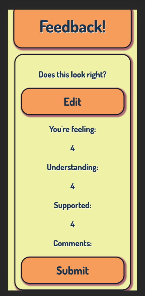 My first full stack Redux application, i was tasked with building a daily check-in portal for an education environment. A flow of different views prompted users to answer questions about how they were feeling, including a comments field. I then rendered all this data in rows in an admin view, with the ability to delete en entry, or flag one for later review. Mobile friendly, i used basic css for the styling but put an emphasis on the ux, with tactile response on the range inputs and buttons.